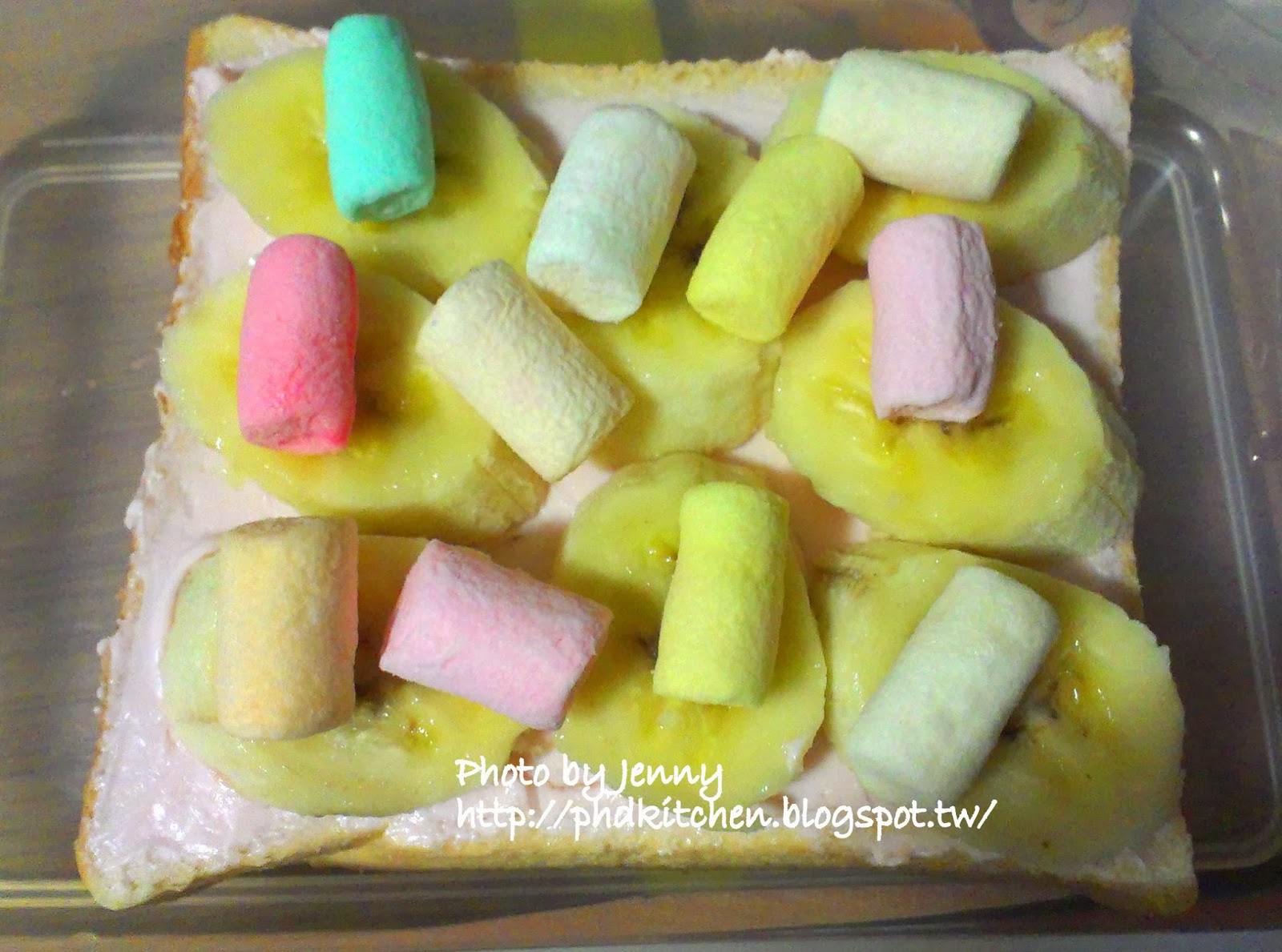 2.這道吐司不建議前一晚做好隔天再烤,因為香蕉會出水,棉花糖會潮濕,口感不佳